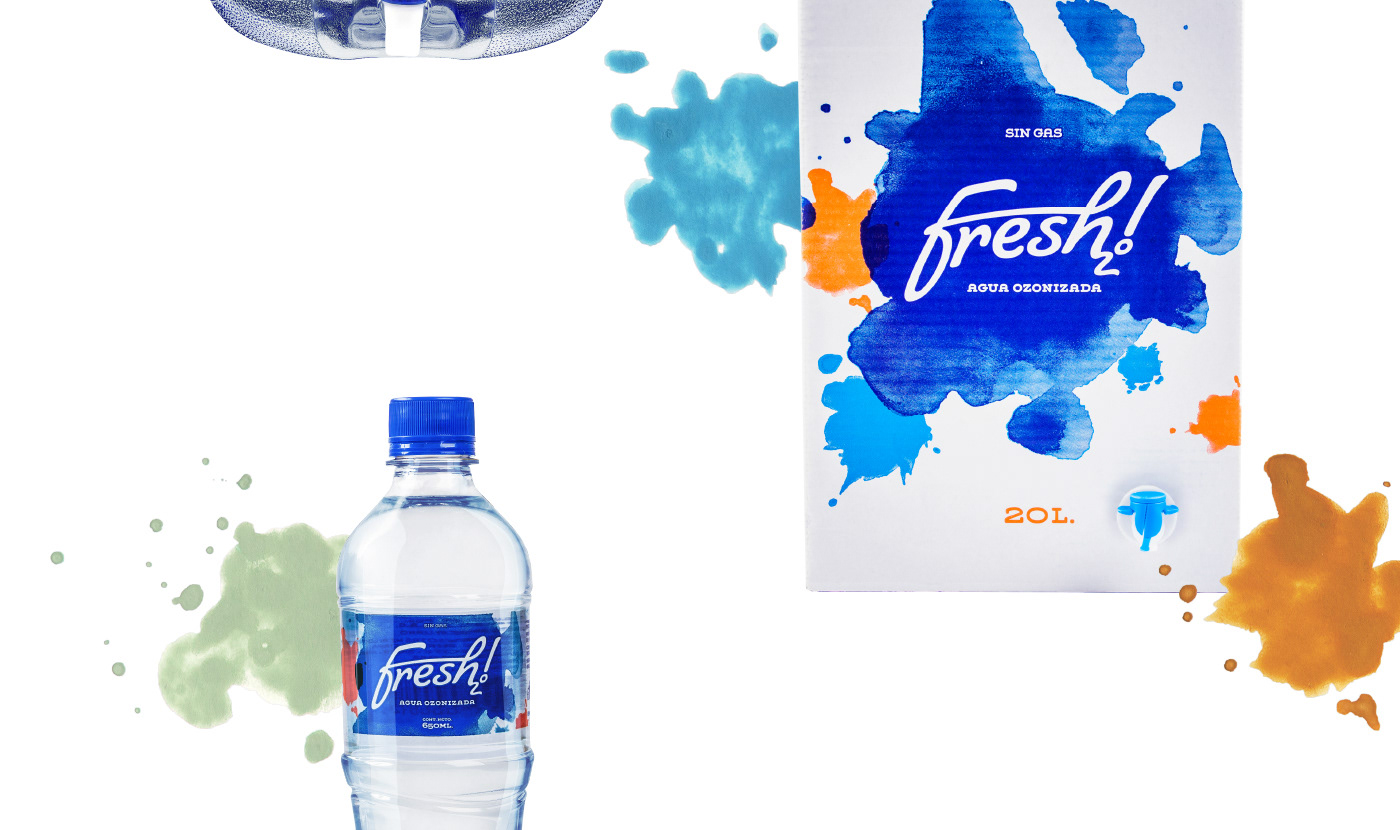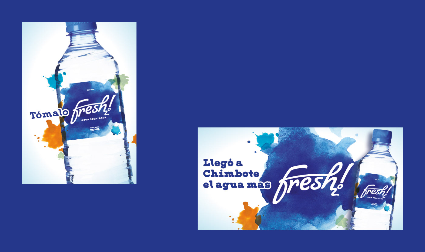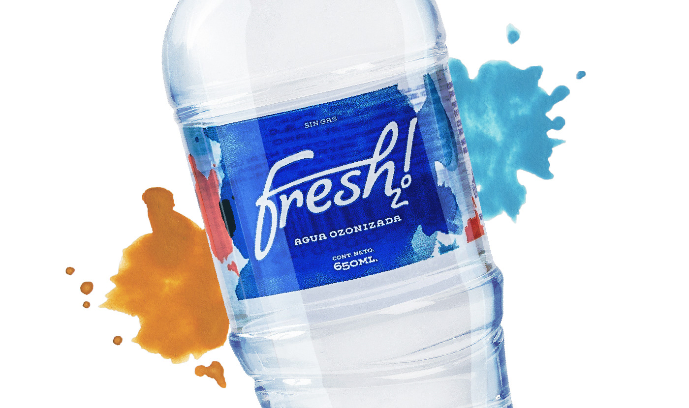 Fresh2o es una popular marca de agua con base en Chimbote - Perú. La identidad refleja las cualidades de su nombre: con una tipografía relajada, rodeada de unas explosiones espontáneas de colores que le imprimen vitalidad y frescura.